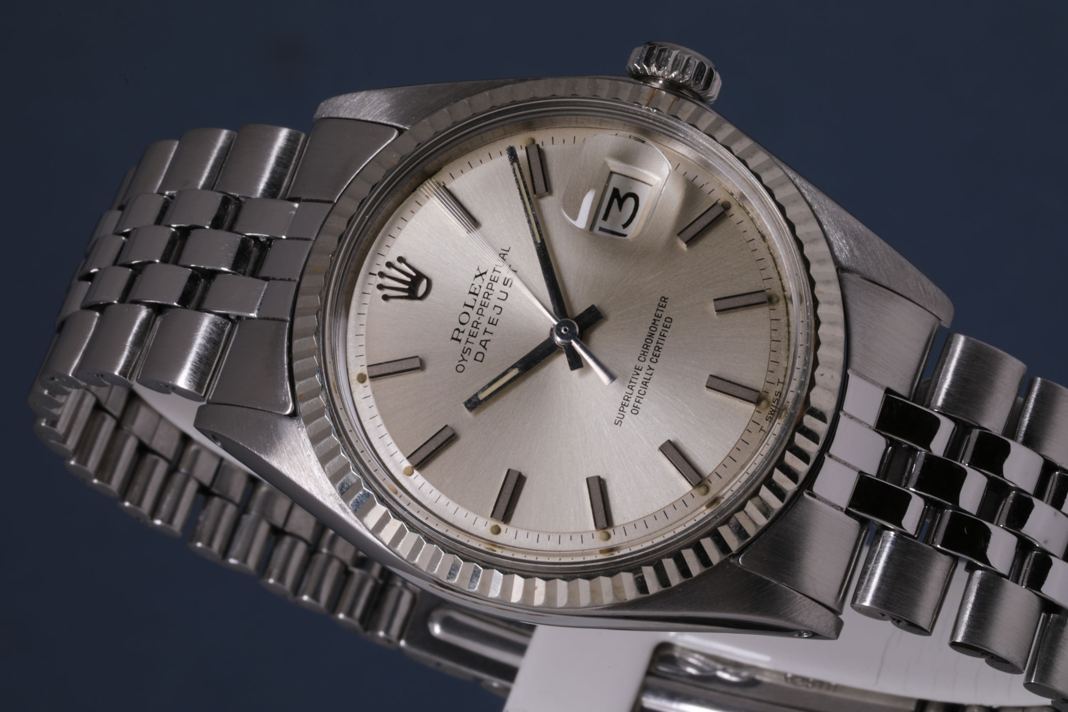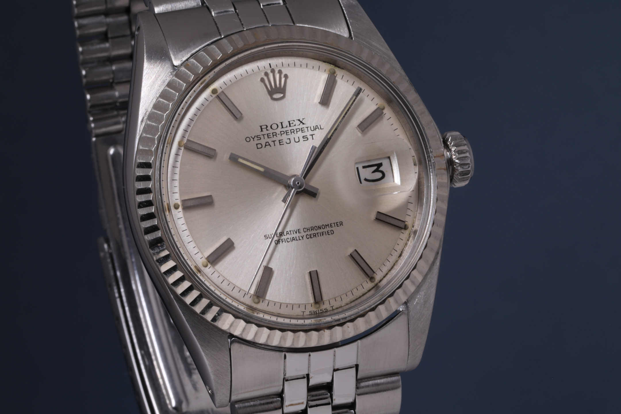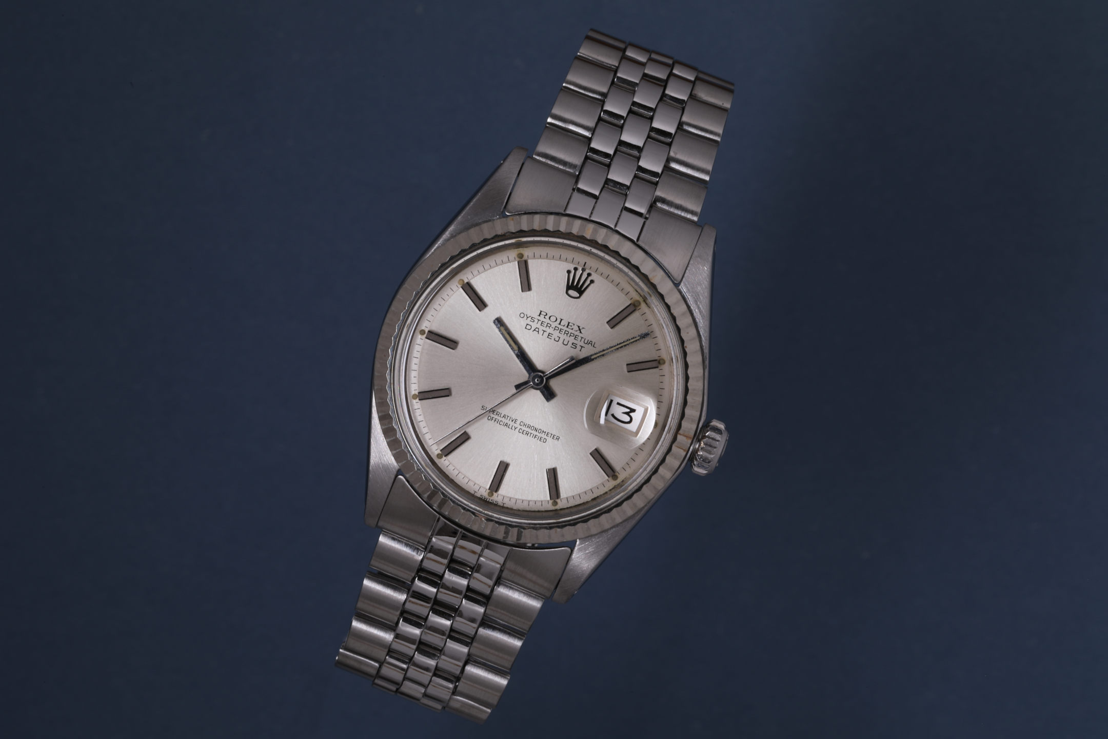 Fond de boîte frappé III 71 (troisième trimestre 1971) et bracelet Jubilé 7835H codé de la même année, cet exemplaire possède patine homogène et parfaitement cohérente : l'archétype de la Datejust.